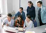 An diesem Tag haben Mädchen die Chance, bewußt einen Blick auf andere als die klassischen Frauenberufe zu werfen. Reinschnuppern konnten die Schülerinnen im Landeskirchenamt in die Arbeit des Baureferates, in die Aufgaben von Oberlandeskirchenrätin Brigitte Müller, die das Personalreferat leitet, sowie in die Online-Redaktion. Zwischen Steinmetzarbeiten und Websitegestaltung blieb den "Girls" ausreichend Gelegenheit, Fragen loszuwerden. "Da hat er Pech gehabt"- so lautet die einhelllige Meinung, sollten ihnen zukünftige Ehemänner in die Lebensplanung reinsprechen. Zufrieden mit der Aktion zeigte sich Frauenbeauftragte Gudrun Hermann, die das Programm für den Tag zusammengestellt hatte: "Nächstes Jahr sind wir wieder dabei."